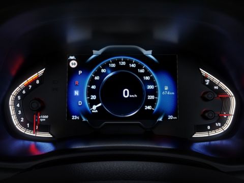 Stilul și culoarea afișajului variază în funcție de modul de condus selectat: albastru pentru Normal, verde – Eco sau portocaliu pentru modul Sport.