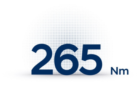Cuplul maxim atinge 265 Nm.